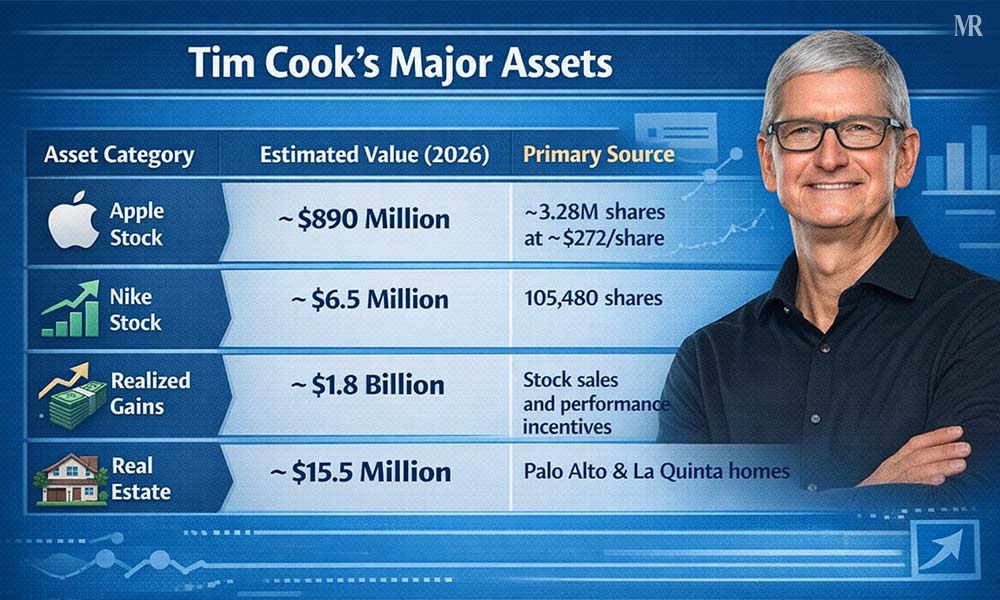 After more than a decade leading Apple, Tim Cook has built substantial personal wealth, largely through long-term equity compensation rather than founder ownership.