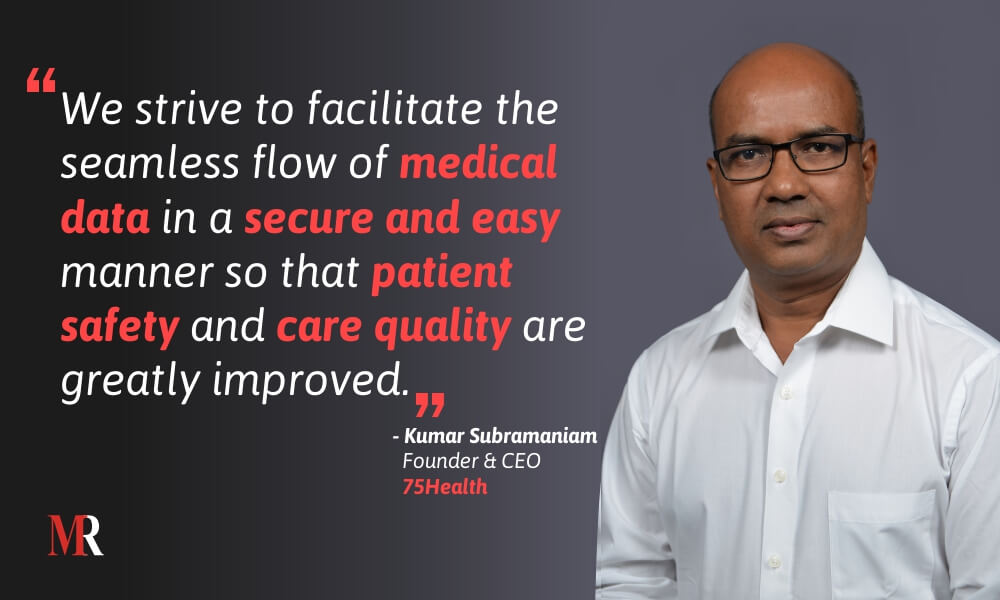 Kumar Subramaniam is the Founder and CEO of 75Health, a provider of Electronic Health Record (EHR) software, which is not just about being paperless but also inculcating a tradition of simulated and simplified working with intelligent systems that help doctors work efficiently and enhance patient care.